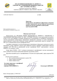 Органом оцінки відповідності «ПРИРОСТ» ТОВ «ДКС СЕРТИФІК УКРАЇНА» після проведення наглядового аудиту в 2025 році прийнято позитивне рішення щодо підтвердження дії сертифікату відповідності системи менеджменту Департаменту вимогам стандарту ISO 9001:2015 в національній системі сертифікації НААУ.